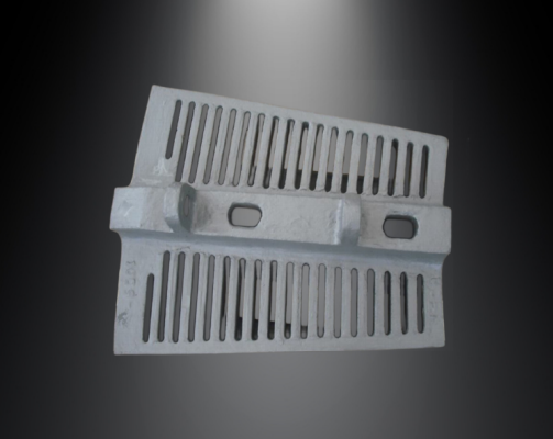 兩種金屬液熱復(fù)合鑄造,打擊面采用過(guò)共晶高路鑄鐵,具有兩種不同力學(xué)性能,耐磨性能好、韌性高的特點(diǎn),是普通Mn13Cr2材質(zhì)襯板的2.5 倍以上耐磨。